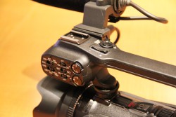 代わりにHF G10は、本体上部後方にミニアドバンストシューを設け、オプションの5.1chサラウンドマイクロホンなどが接続できるようになっている。内蔵マイクは指向性/周波数特性が選択できる。