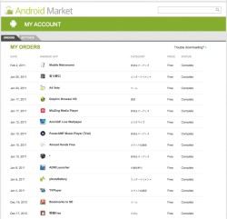 またサインイン後は、画面右上のGoogleアカウントやログインバーに「My Market Account」の項目が追加される。これをクリックすると、自分の端末にインストールされているアプリ一覧が表示することが可能だ。