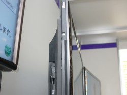 また、光の3原色RGBの光源を全てレーザーバックライトとした投射型のLASERVUEに対し、赤色だけをレーザーバックライトとしたことにより、製造コストを抑えながら、同時にディスプレイ部の薄型化も可能にした。今回展示された試作機でも、奥行き70mmの薄さを実現している。