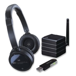 本機はPCで再生した音楽をワイヤレスで飛ばして、オーディオ機器やヘッドホンで楽しめるよう設計されたセットシステム。PCに接続するUSBスティックタイプのワイヤレス送信機、オーディオ機器の側につなぐ受信機、ワイヤレスヘッドホンのスリーピース構成となる。