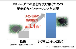 「レグザエンジン CEVO」には新LSIと専用チップを組み合わせた新しいアーキテクチャーが採用されている。LSIにはグラフィックアクセラレーターを搭載。従来の「CELLレグザエンジン」ではCell Boradband Engineとソフトウェアのパフォーマンスにより実現していた高度な処理を、CEVOではハードウェアベースの処理に分散させたことで、ソフトウェア技術による処理負担を軽減し、エンジン全体としての処理効率を高めている。