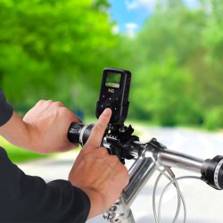 自転車のハンドルへの取り付け用と、自動車のルームミラーなどへ取り付けるためのクリップタイプという2種類のアタッチメントを付属。本製品以外のデジタルカメラを自転車のハンドルに取り付け可能にするためのアタッチメントも付属する。