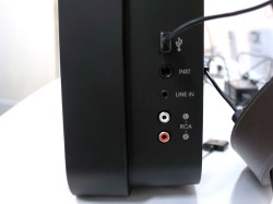 端子類ではRCAと3.5mmステレオミニに加えて、楽器用の6.3mmプラグ入力も搭載。ギターなどを接続して音楽と一緒に演奏するなどといった使い方もできる。なお、その際には音楽と楽器それぞれのボリュームのバランスを任意に変更することもできる。