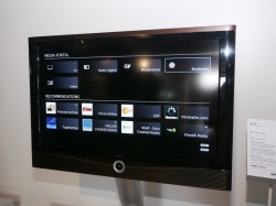 「Art32」はパーソナルサイズの32V型液晶テレビ。DLNAのデジタルメディアプレーヤー機能も搭載し、ネットワーク上のDMS対応機器に保存したコンテンツの再生が楽しめる。本体にはWi-Fi機能を内蔵しており、オプションでテレビ番組録画用のHDDも乗せることができる。本機に搭載されている「Loewe MediaPortal」は、ネットワークにつながれた機器上の動画/音楽/静止画コンテンツや、インターネット上のコンテンツをスマートに一覧表示できるオリジナルのユーザーインターフェース。インターネットブラウジングやネットラジオ、VODコンテンツの再生なども楽しめる。
