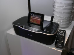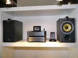 オーディオコンポーネント“Fidelio”シリーズからは、アップルのAirPlayに対応するワイヤレスオーディオシステム「DS9800W」を展示。左右のステレオスピーカーにWi-Fi機能とデジタルアンプが搭載されており、iPod/iPhone/iPadに保存した音楽ファイルをAirPlay経由で高音質に楽しめる。ヨーロッパでは今春から、バッテリーチャージ専用のドックをセットにして、899ユーロの価格で販売が開始される予定だ。