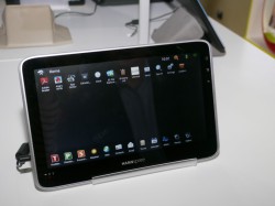 今回のイベントで注目を集めていたのが、HANNSpreeブランドのタブレット端末「HANNSpad SN10T1」だ。Android OS 2.2を採用しており、10.1型、1,024×600画素の液晶パネルはマルチタッチ操作に対応している。ARMの1GHzデュアルコアCortex A9プロセッサー、NVIDIAのTegra IIグラフィックスエンジンをそれぞれ搭載。1080p動画のスムーズな再生が楽しめるという。本体には16GBの内蔵メモリーを備えるほか、SDメモリーカードスロットやHDMI端子も搭載する。ヨーロッパでは3月から発売されており、価格は379ユーロ。会場には本機の開発ノウハウを活かして、さらに薄型化を図ったタブレット端末のプロトタイプモデルも出展されていた。
