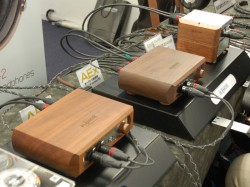 オーロラサウンドは、安定化電源キット「音松」の試聴デモのほか、本イベント限定となるM2TECH社のUSB-DDC「hiFace Professional」のホワイトモデルを公開していた。