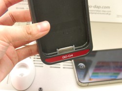 ベンチャークラフトは、バーブラウン製のオペアンプを採用したDAC搭載のiPhone 4専用ジャケット「GD-04」の試聴デモを行った。