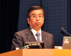 日本放送協会からは専務理事 技師長の永井研二氏が登壇し、SHVの研究開発の経緯を説明した。