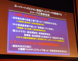 なお今回開発された試作機は、シャープが国内に構える液晶ディスプレイの量産工場に設けた製造ラインでつくられたものという。SHVパネルの製造コストについて、水嶋氏は「今回はまだ研究開発段階での発表だが、将来的にSHVパネルの価格は、現在のハイビジョンテレビと比べ、それほど高価にならない程度に落とし込めるとみている」との見解を示した。