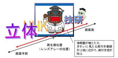 NHKとJVC・ケンウッド・ホールディングス(株)は、裸眼での立体映像視が可能となる「インテグラル立体テレビ」の共同開発において、奥行き感の大幅な向上に成功したことを明らかにした。