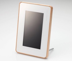 エレコム(株)は、インテリアスタイルになじむデザインを意図したデジタルフォトフレーム“Décor Intérieur(デコー・インテリア)”の第1弾製品として、天然木を使用したモデル“トリート”「DPF-X7WT10」を7月上旬より発売する。価格はオープンだが8,980円前後での実売が予想される。