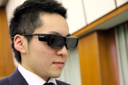 同梱する3Dメガネは新デザインのものを採用。高級眼鏡フレームメーカーの増永眼鏡(株)と協業し、ツルの部分に超弾性素材を使用し、大人から子供まで掛け心地を高めた。また質量も約40gと、これまでの65gのものから約40%の軽量化を実現した。