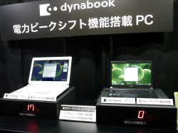 四つめは、コンシューマー向けノートPCでの電力ピークシフト対応の強化だ。7月からdynabook T551/T351も、ダウンロードで「電力ピークシフト機能」の利用が可能になる。これにより、dynabook全機種が電力ピークシフト機能対応となった。