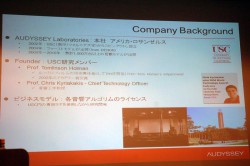 Audysseyはもともと南カリフォルニア大学(USC)のImmersive Audio Laboratoryが母体。USCの映画芸術学部の教授であり、THXの開発者であるTom Holman氏と、同大学の音響工学教授だったChris Kyriakakis氏が中心となって2002年に設立された若い会社だ(Chris氏のインタビューはこちら)。テレビや携帯電話、カーオーディオなど様々な機器に採用される音響アルゴリズムのライセンス販売を行っている。採用実績としては、全世界80のIMAXシアター、デノンやオンキヨー、マランツのAVアンプ、東芝の液晶テレビ“レグザ” “CELLレグザ”、ジャガー、ボルボなどが挙げられる。
