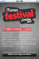 アップルの音楽イベント「iTunes Festival」の中継映像を視聴できる無料アプリが登場