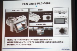 上記のPEN LiteとPEN miniの位置付けは、「Liteはこれまでエントリー向けモデルとして訴求してきたが、今後は高機能を小型ボディに収めたモデルとしてアピールする。miniは、基本撮影機能は上位機から踏襲した超小型ボディのエントリーモデルという位置付け」とのことだ。