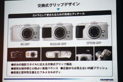 「内蔵ストロボの場合、望遠になると光が届かない場合もあるが、外付けストロボはそういった点もカバーできる。E-P1の時からストロボを入れる、入れないでは押し問答があった。今後のかたちについては、これからユーザーのご意見をいただいて考えていきたい」(小川氏)。