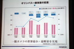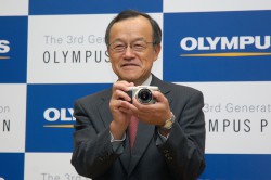 高山社長は、「オリンパスのデジタルカメラは常に世界最小・最軽量を実現してきた。また、超音波式ダストリダクションシステムやライブビュー機能なども他社に先駆けて搭載し、デジタル一眼の基本性能を向上。手ブレ防止機能の内蔵やアートフィルターなど撮影を楽しくする機能も多数開発してきた」と同社の技術力の高さをアピール。