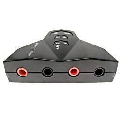本機はパソコンのUSB端子につないで専用アプリケーションをインストール後、7.1chのバーチャルサラウンド出力が楽しめるようになる外付けタイプのアダプター。付属ソフトではミキシングやエフェクト設定も可能。対応OSはWindows XP以降。2系統の音声出力端子を備えているので、2台のヘッドホンをつないでペアリスニングも楽しめる。音声のボリュームは、本体搭載のスイッチで調節できる。