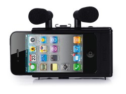 ヘッドホンモニター出力やカメラ用コールドシューも装備し、サードパーティー製のオプションの装着などに利用可能。単4型乾電池2本もしくはUSBからの給電で動作し、アルカリ乾電池使用時で8〜10時間程度の動作が可能。USBからの給電時はiPhone4にも給電される。