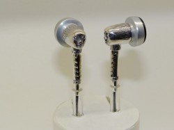 “海への郷愁と憧憬が込められた”というデザインの「Shark」シリーズの本体は、シルバー925に本革のパーツのコンビ。本体にウェーブ状の彫刻が象られたデザインが特徴のオープンエア型インナーイヤホン。価格は52,500円(税込)。