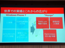 「Windows Phoneについては、最初は日本では投入しなかったため他社に遅れをとるような形になった。しかし、実際の伸び具合としては従来のスマートフォンより勢いがある」と樋口氏はWindows Phone OSが市場に受け入れられていることを紹介。Windows Phone 7に比べて今回は500以上の機能追加を行っていることなどに触れ「大変に使いやすいスマートフォンだと自負している」と自信を見せた。