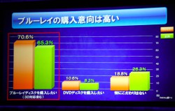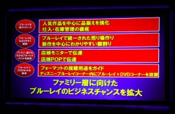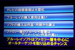 またBDプレーヤーやレコーダーの普及台数がDVDほど多くなく、見られる場所が限定されるという問題についてはBD+DVDのセットを訴求していく考えを紹介した。