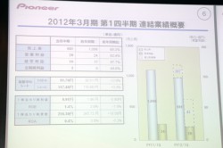 小谷社長は「震災の影響はあったが、日本を挙げて積極的に挽回策に取り組んでいることで改善の兆しが見えておりパイオニアとしても当初の計画を上回る結果となった。通期計画の達成に向け、良いスタートが切れたと思っている。コスト構造の改善により利益が出やすい体質になってきたので、市場が正常化していく2Qのなかで、OEM対応や新ジャンル製品投入、中国市場への積極的進出などを行っていきたい」と締めくくった。