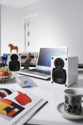 tangent社のスピーカー「EVO」は100mmのウーファーと25mmのソフトドーム・トゥイーターを搭載したブックシェルフスピーカー。インテリアにフィットするように施されたというカラフルなカラーバリエーションも特徴のひとつだが、「koben」でペアリングされるのはホワイトモデルとなる。