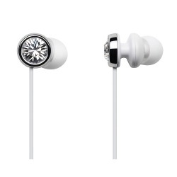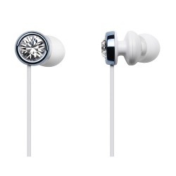 ハウジングにスワロフスキークリスタルを採用したカナル型イヤホン“Bijoux”。カラーバリエーションはラベンダーバイオレット/チタニウムシルバー/ライムグリーン/アクアブルー/シャンパンゴールド/ファントムブラックの6色。