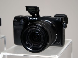 また、Aマウント機で採用した新デザインにも言及。「ボディ上部のシャープなエッジ、そこから両サイドに至るなだらかな曲線が特徴」とコンセプトを語り、「フルHDプログレッシブ動画にふさわしい音質性能を象徴するマイク部分を頂上部に配し、デザインとの融合を図った」と言葉を続けた。