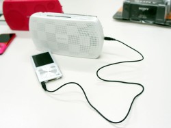3.5mmステレオミニの音声入力と音声出力端子を装備。WalkmanなどのDAPを接続してスピーカーとして使用したり、WalkmanやICレコーダーなどにラジオを録音するなどといった使い方もできる。