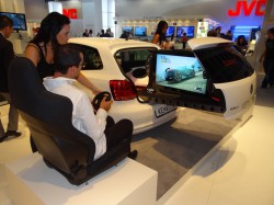 他にも一般来場者にも人気の高いデモカーの展示は、フォルクスワーゲンの「Polo」をベースにしたカスタムカーを用意。リア側に2つのディスプレイを設置して、2人のプレーヤーが向かい合ってWiiのゲームを楽しめる展示が人気を集めていた。