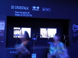 ブースでは同社独自のプラズマパネルを「NeoPDP」として訴求。サブピクセルの600Hz駆動など、おなじみの技術を紹介している。また国内モデルでも既に導入されている、3Dクロストークキャンセル技術についてもアピールしている。