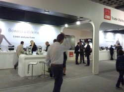 携帯端末向けの周辺機器関連メーカーが軒を連ねる「iZONE」に居を構えたB&W。iZONEへの出展ということもあり、大型スピーカーなどの展示は行わず、携帯端末やPCとの組み合わせを想定した製品が中心のブース展開となった。