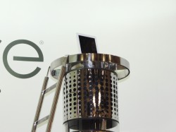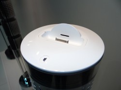 本体にiPhone/iPodが接続可能なドックを備えた、360度無指向性のアンプ内蔵フロアスタンドスピーカーだ。総合出力は120W。本機は背丈が約1.1mと、一般の家庭にも気軽に置くことのできるサイズだ。本体はステンレススチールにガラスパーツを組み合わせたスタイリッシュなデザイン。クロームフィニッシュのモデルは既に発売されており、ブラックとホワイトが秋に追加されるという。