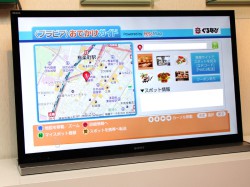 <ブラビア>おでかけガイド by PetaMapは、ソニーが提供する位置情報サービス「PetaMap」を利用したサービスで、約100万件の豊富なスポット情報をブラビアの画面で楽しめる。