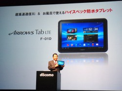 また同氏は2機種を比較し、「ほぼ同じ性能を持っているが、それぞれの特長を挙げるとするならば、GALAXY Tabの方が軽く、ARROWS Tabは防水でワンセグ機能が付いている。以上の点から、強いて言うなら持ち歩きやすいGALAXY Tabが法人寄りで、防水機能など主婦の方も楽しめる特長を備えたARROWS Tabが個人向けともいえるかもしれない」としながら、「私たちとしては、特に法人向け/個人向けという分け方はしておらず、ユーザーの好みに合わせて選んで欲しい」と述べた。