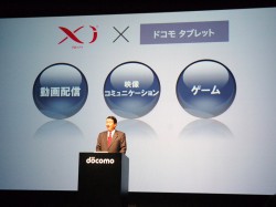 さらに、年末までにXi対応スマホを4機種提供することも発表。山田氏は「コンテンツプロバイダー各社と共に魅力的なコンテンツを取りそろえていく。ドコモのタブレットがあれば、動画や迫力のゲームを楽しめる。ぜひ一家に一台置いてほしい」とし、「Xiとタブレットが出会うことによって新たに生まれる魅力を多くの人に体験してほしい」と語った。