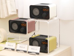 また、LED表示のデジタルクロックとアラーム機能を備えている。アラーム機能は設定時刻の3分前から音楽が徐々に大きくなるシステム。iPod/iPhoneの曲もアラームに設定することができる。