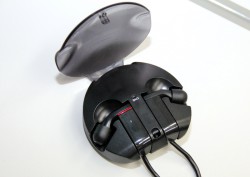 充電スタイルも工夫し、キャリングケースに充電池を内蔵。イヤホンをケースに装着すると自動的に充電を行う。キャリングケース内蔵の充電池でイヤホンを約2.5回分充電できる。