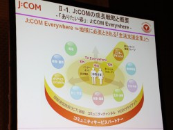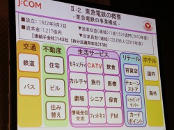 野本氏は「イッツコムは開業してからなかなか利用車が増えず、苦しい時代もあった。20年以上が経ったいま、やっとCATVが情報インフラになったと考えている」とも語った。今回のJ:COMとのYCV共同買収については、「わたしたちは街づくりの視点から、CATVをひとつのツールとしていかに活用するかという視点を持っている。J:COMはCATV事業からいかに生活支援サービスを提供していくかという視点を持っている。『CATVが何をできるか?』という部分で、今回は互いの思いが合意した」と述べた。また「イッツコムの場合、チャンネル数がアナログ40ch、デジタル60chだったが、地デジ移行でアナログの分が空いた。ここで色々な商品を紹介するなど、様々な使い方が考えられる」と説明した。
