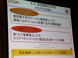 なお両社とも、将来的なJ:COMとイッツコムの合併などについては、現時点では考えていないと述べ、「CATVが勝ち残るために、業界全体で手を携えていきたい」とコメントした。