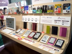 電子書籍コーナーは、8月から設置していた新宿本店に加えて、梅田本店、札幌本店、流山おおたかの森店にも扱いを拡充。ReaderのほかiPadやAndroidタブレットで同社の電子書籍サービスを体験することができる。なお、店頭での電子書籍端末販売の対象となるのはReaderのみ。また前述の4店舗に加えてネット書店「紀伊國屋書店BookWeb」(以下、BookWeb)でも販売を行う。