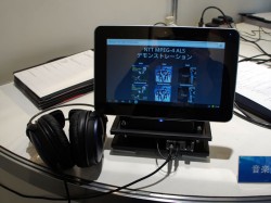 本日21日より開幕した「オーディオ&ホームシアター展TOKYO 2011」(音展)。UDXビル会場の一角にはNTTエレクトロニクスが開発した音響技術「HIFIREVERB」(ハイファイリバーブ)、およびSYNCOMM TECHNOLOGYによるロスレスの新ワイヤレス通信技術「ezWa」、そしてNTTが開発したロスレスオーディオ技術「MPEG-4 ALS」という、新技術に関する展示がなされている。