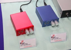 そのほかポーカロ・ラインのコーナーでは、μSHARのUSB-DAC「μDAC 111」や「μDAC 311」、ポータブルヘッドホンアンプ「μAMP 109G2」「μAMP 109G2+」など、すでに発売しているモデルも出展。109G2と109G2+では、最近バッテリーをリチウムポリマーに変更し、連続駆動再生時間が延びたことも紹介していた。