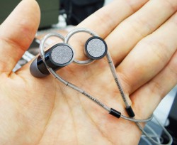 カナル型イヤホンのレギュラーシリーズである“CLEF”にも、“軽いかけ心地”を実現したというイヤホン「CLEF-String」など、個性的なラインナップが揃う。本日のブースではその主力ラインナップが一堂に揃った。