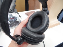 ヘッドパッド、イヤーパッドにはともにソフトで耐久性の高いエチオピアンシープスキンを用いている。会場に用意されていた実機を見ると、贅沢なパーツの質感と、ブラックを基調とした落ち着いたカラーリングがマッチした贅沢な佇まいが所有欲をそそる。