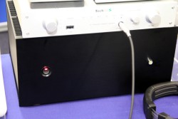 またヘッドホンで注目を集めていたのは、AUDEZE「LCD-3」の展示。まだ正式にミックスウェーブが取り扱いを決めたわけではないというが、約2,000ドルの超高級ヘッドホンであること、またそのルックスの重厚さから、試聴を求める来場者の列が絶えなかった。